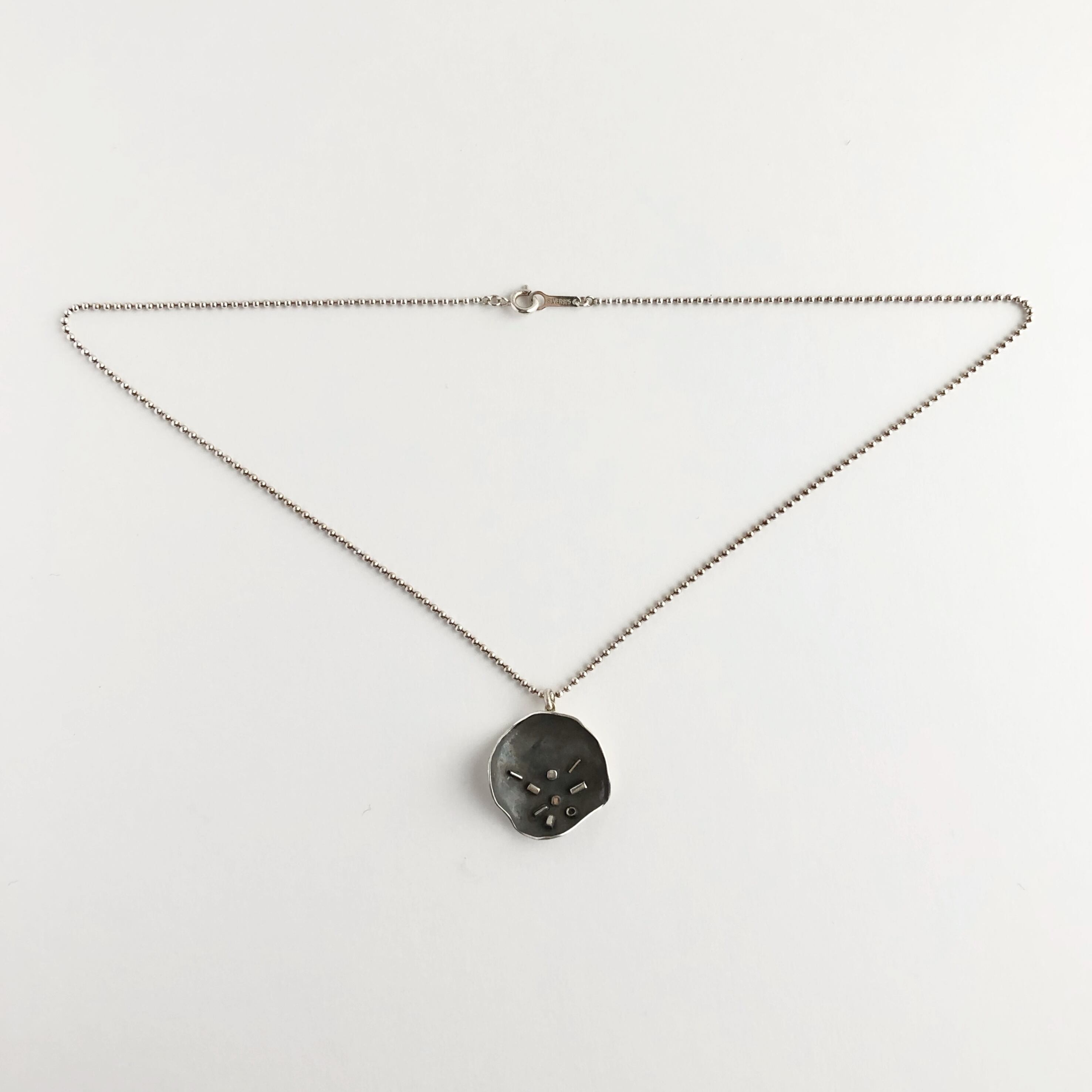 シンプルでエレガントなデザインが魅力のSilver pendant no.18002。純銀で作られた花びらのようなペンダントトップが、上品な輝きを放ちます。