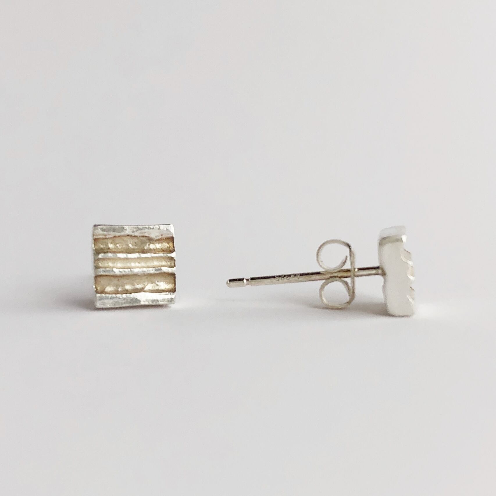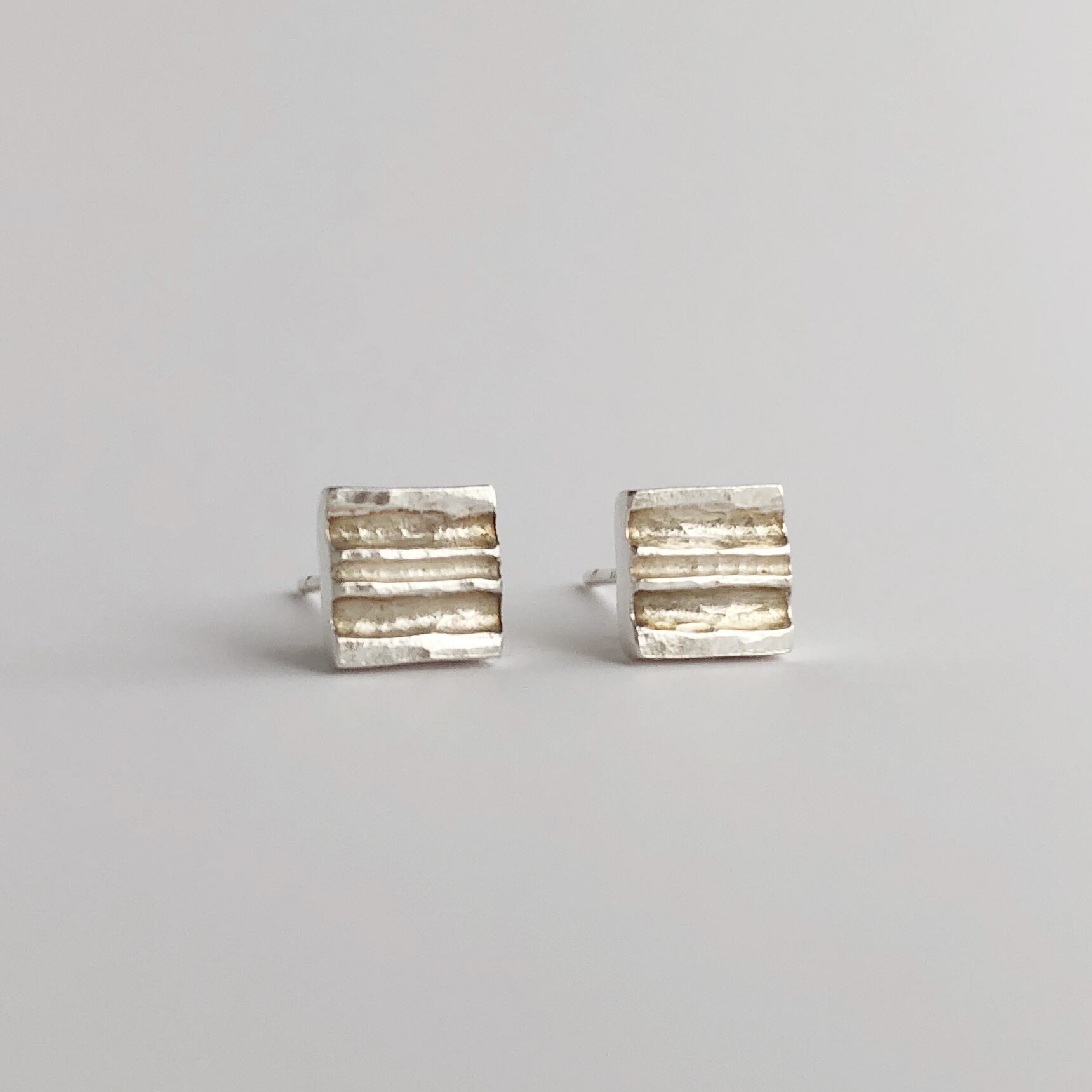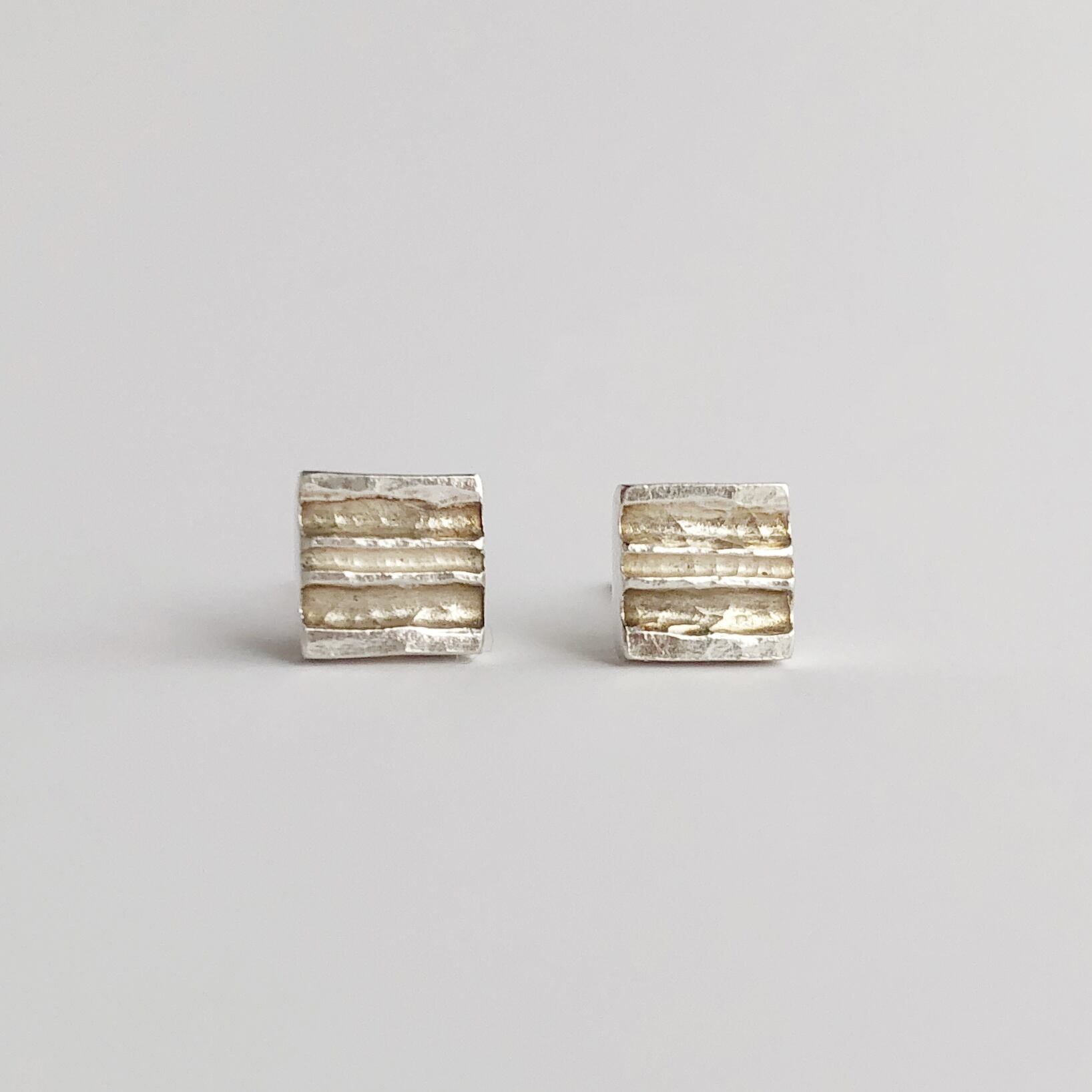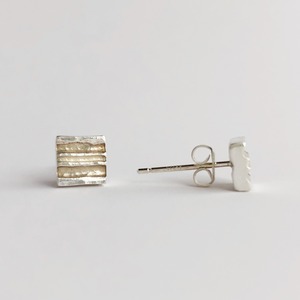 シンプルながら美しさを感じる、タガネで筋をつけたシルバーピアス。小さな四角い形が耳元を華やかに彩ります。洗練されたデザインは、どんなスタイルにもよく合わせられ、オンオフ問わずに活躍します。
