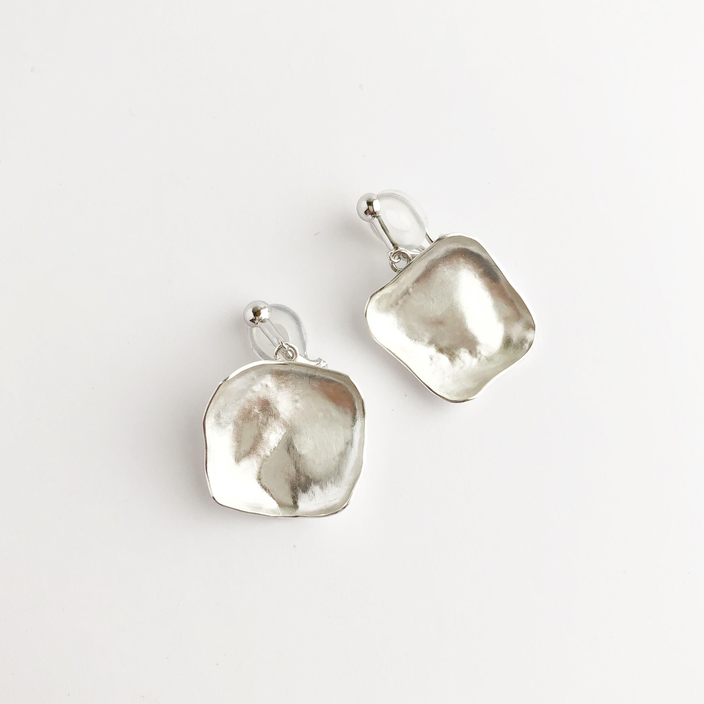 薄い純銀の板を、手作業で叩いたり曲げたりしながら作ったイヤリング。