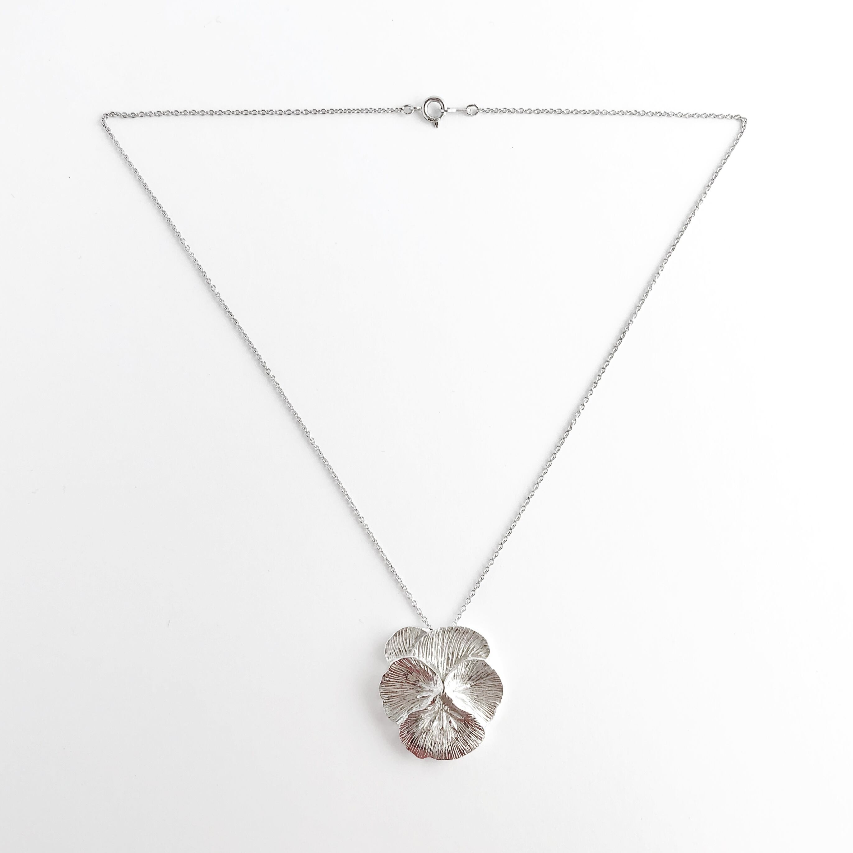 「打ち出し」という技法で作った、パンジーのペンダントです。