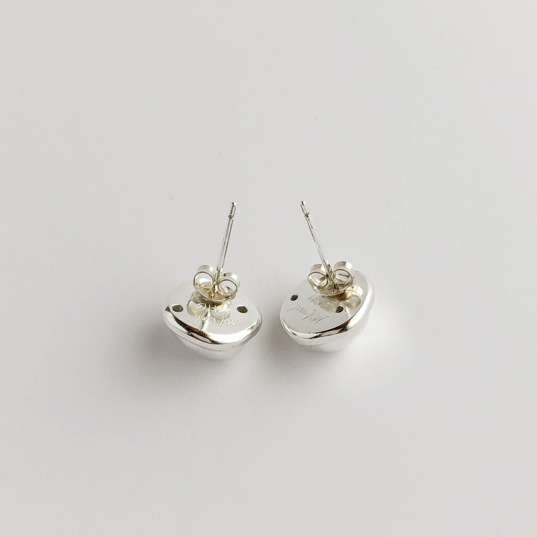 鋳造ではなく、シルバーの板をたたいてパール(真珠)のように変形させ表面を作り、裏張りしています。中が空洞ですので、見た目よりも軽く仕上がっています。