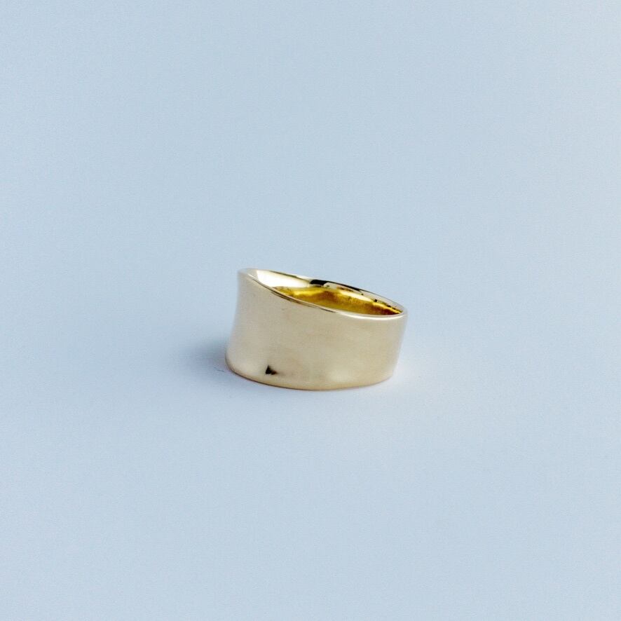 ゴールドは扱ってみるとわかるのですが、触っていると、とても暖かく柔らかい気持ちになる地金だと感じています。色だけならメッキもありですが、ゴールドが持つ比重の重さや、磨くと現れる照りなどが、優しさ・柔らかさ・暖かさ・豊さや余裕・高い可能性の未来、そんなイメージに一番感覚的に近く、見てふれているだけでその感覚に同期できるもの、それがk18イエローゴールドでした。