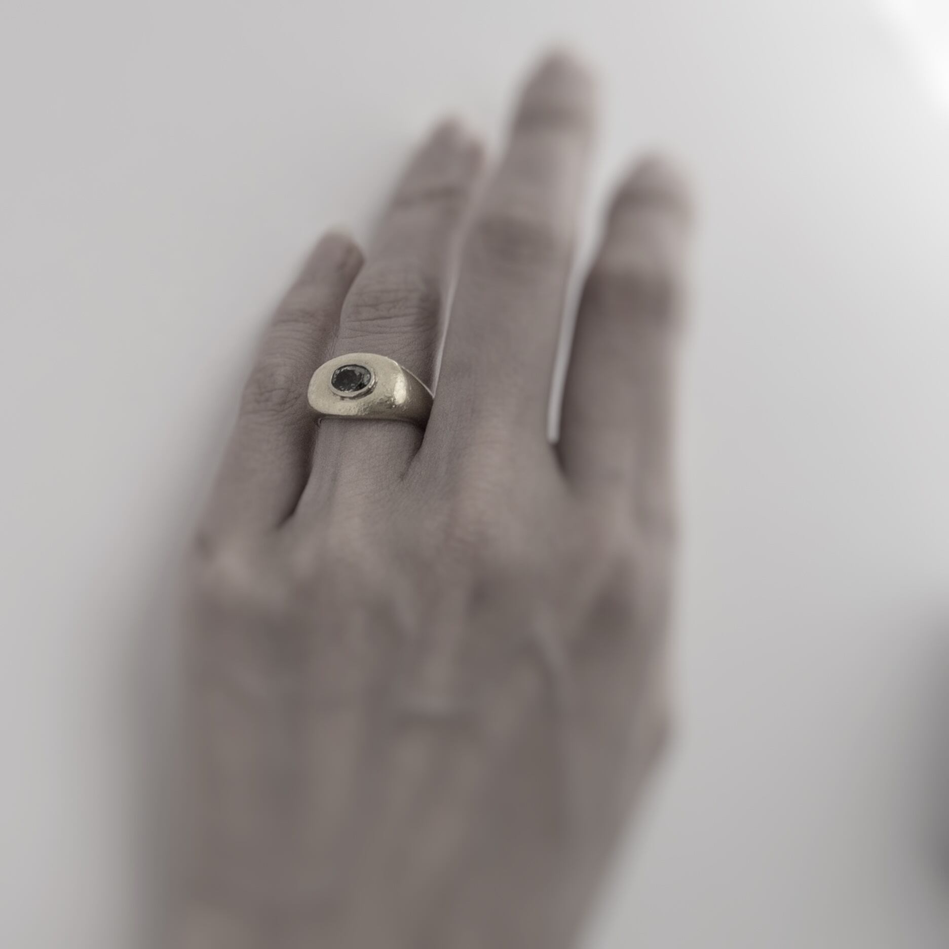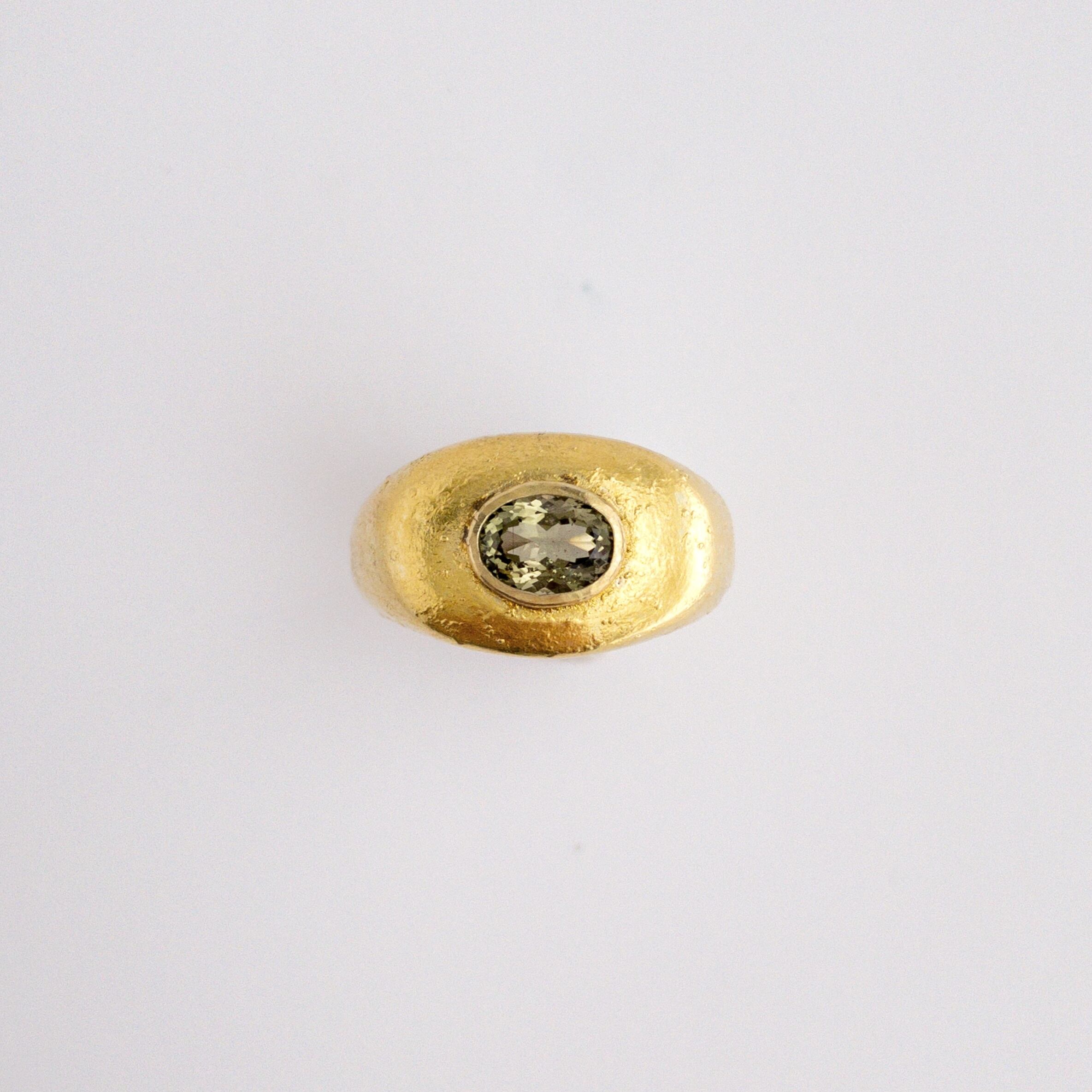 シルバーを土台に表面に純金を施したリングには淡いグリーンの天然石コーネルピンが控えめに輝きます。