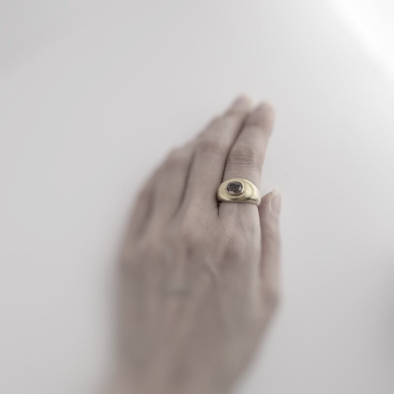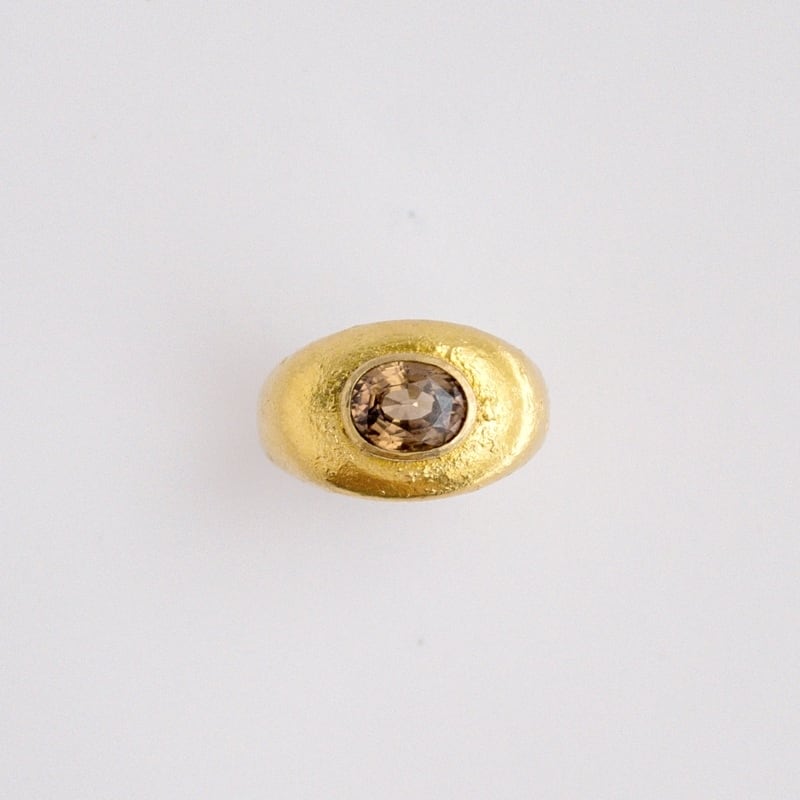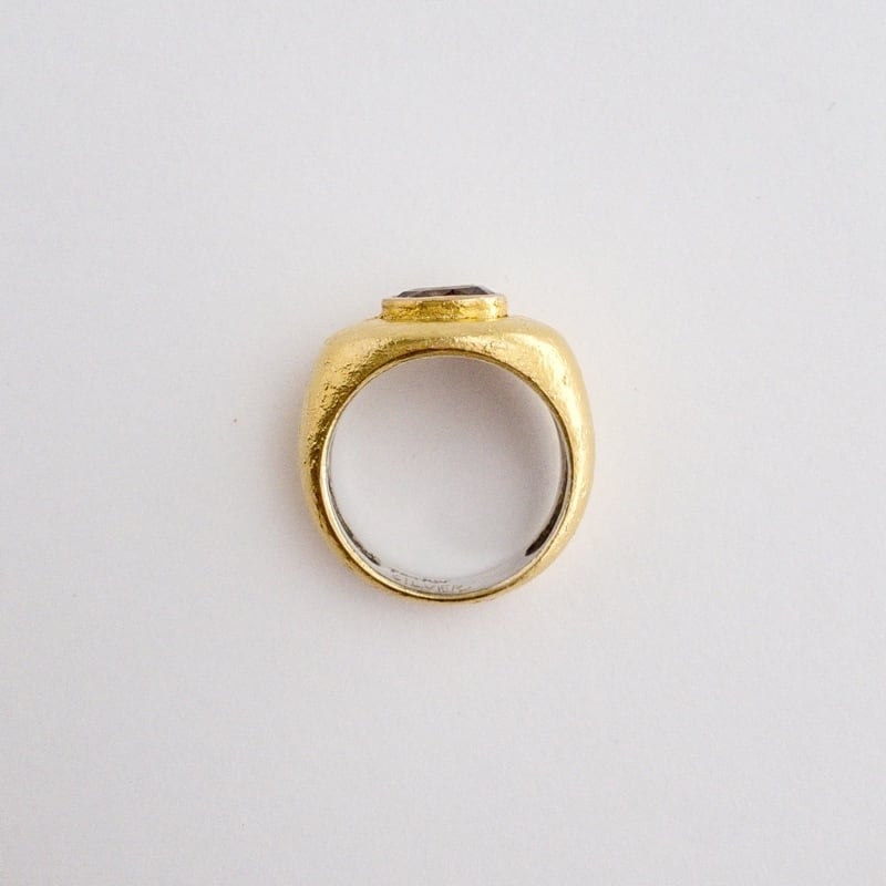 シルバーを土台に表面に純金を施したリングには淡いブラウンの天然石トルマリンが輝きます。