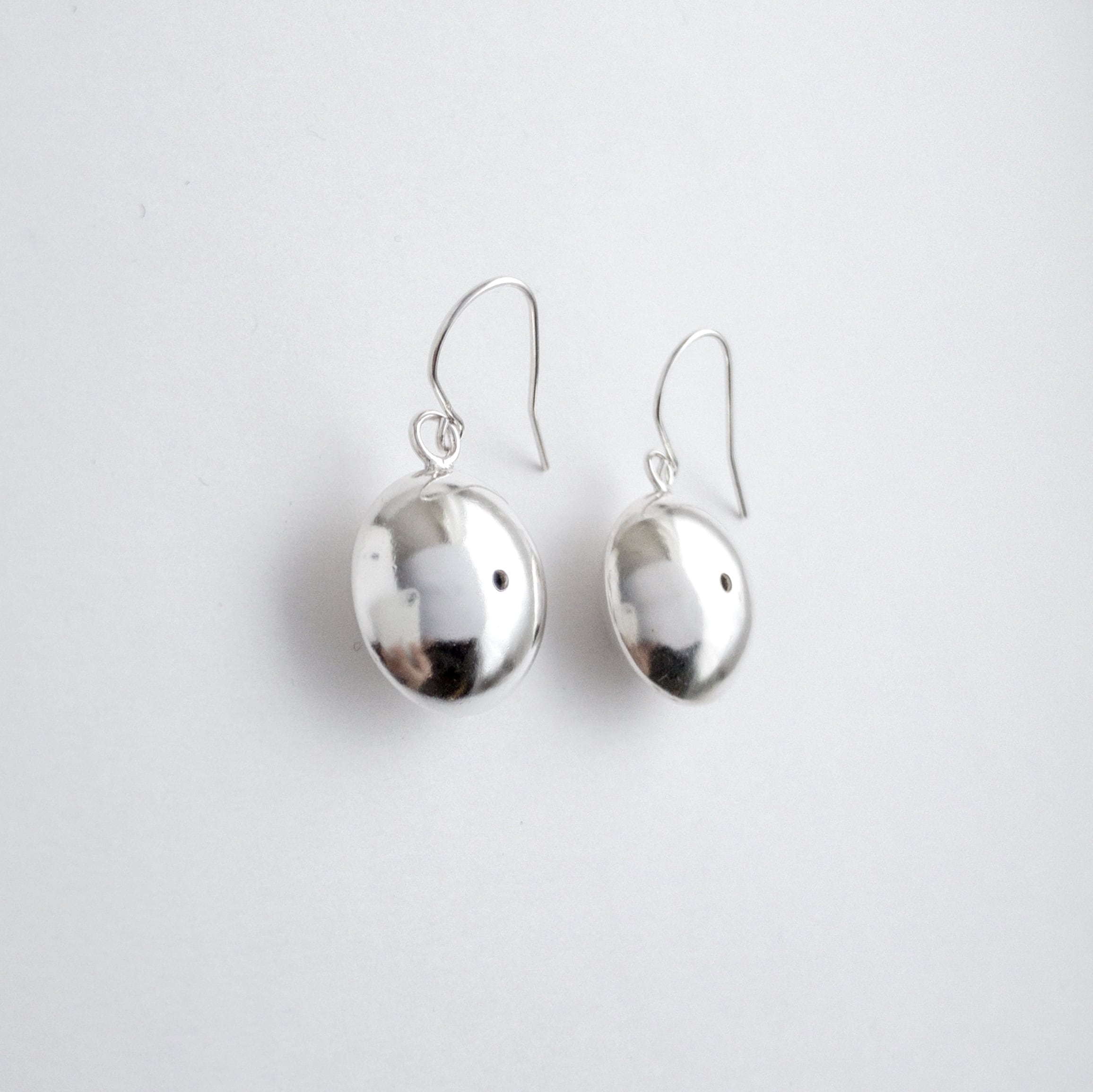 湾曲したシルバーの板を手作業で張り合わせ加工しています。