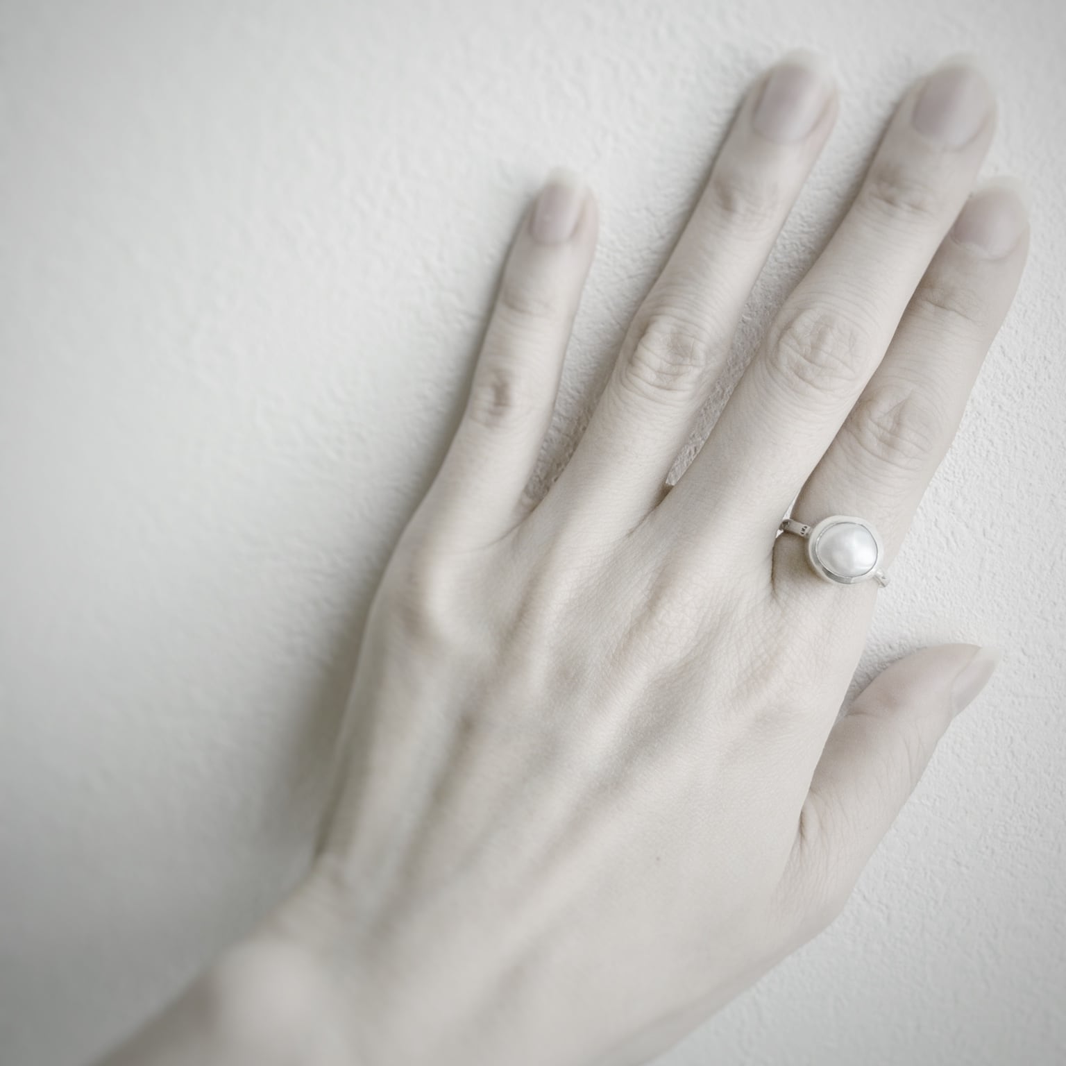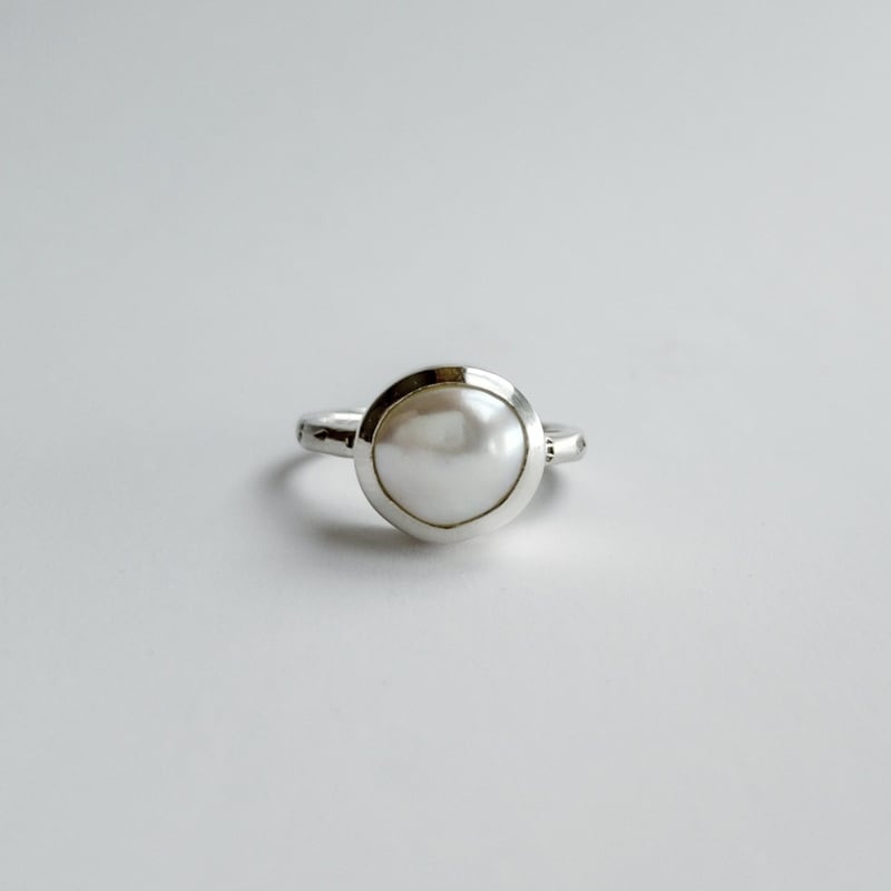 シンプルで上品なデザインの淡水パールのシルバーのリングです。