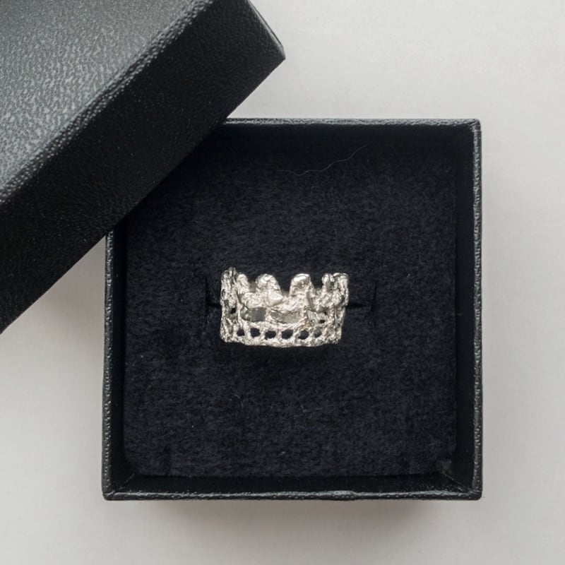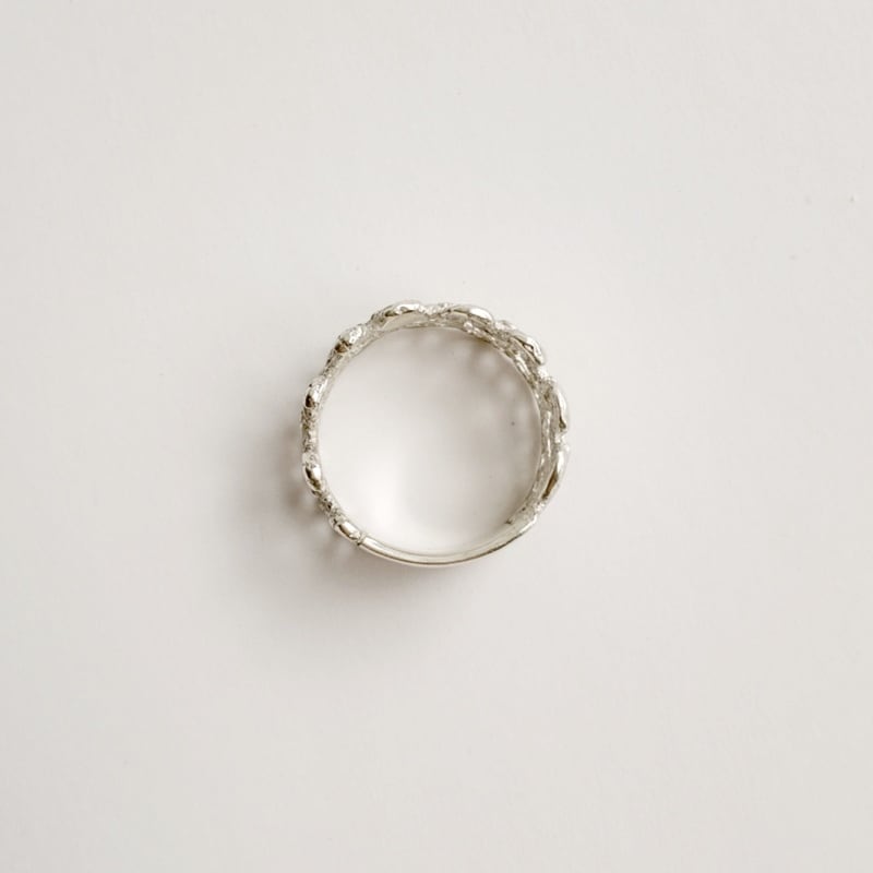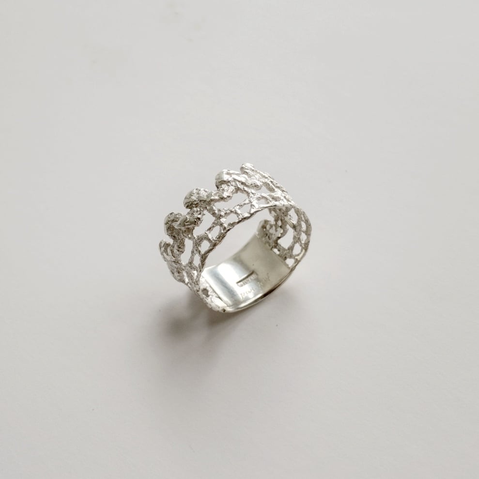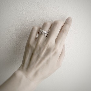 レースの美しい模様が特徴のシルバーリング、Lace silver ring(10号)。手元を華やかに飾るアクセサリーとしておすすめです。シルバーというシンプルな素材でありながら、王冠のような緻密なレース模様が指元を優雅に演出します。